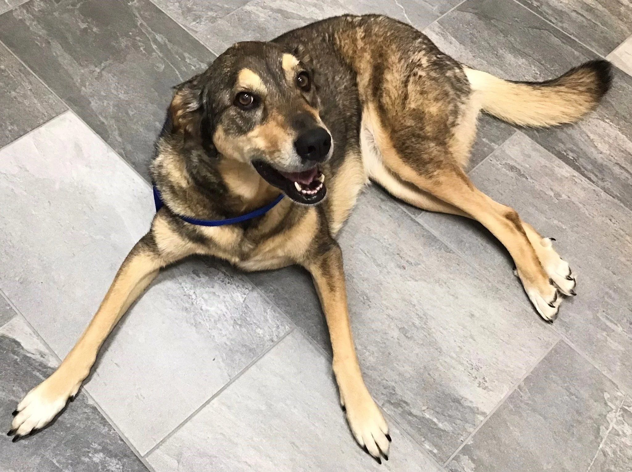 Juno, a crazy-sweet seven-year-old shepherd mix, presented to us as an emergency after she fell down while running around outside. At the time of presentation, she could not stand on her own and could not walk without falling. Her left back leg was very weak and she was dragging it.