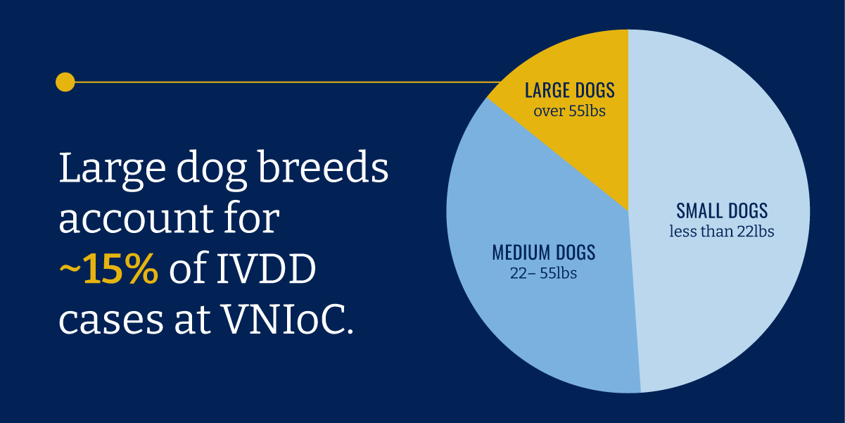 Many veterinarians have only seen a slipped or ruptured disk in a Dachshund–but this can happen in any breed. Pit Bulls, Labs, Boxers, Hounds, German Shepherds and other large dogs breeds account for ~15% of cases at VNIoC.